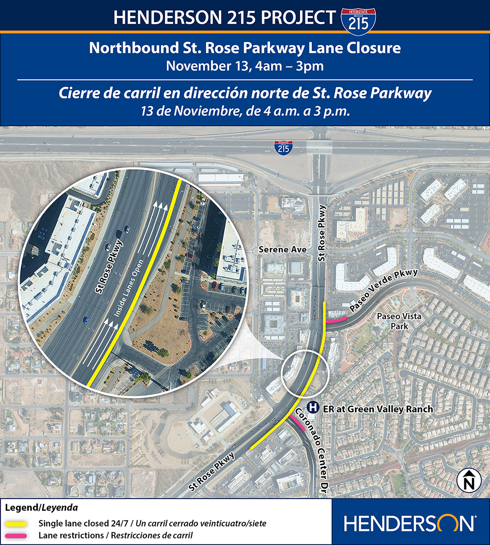 Lane restrictions on Paseo Verde Pkwy and northbound St. Rose Pkwy